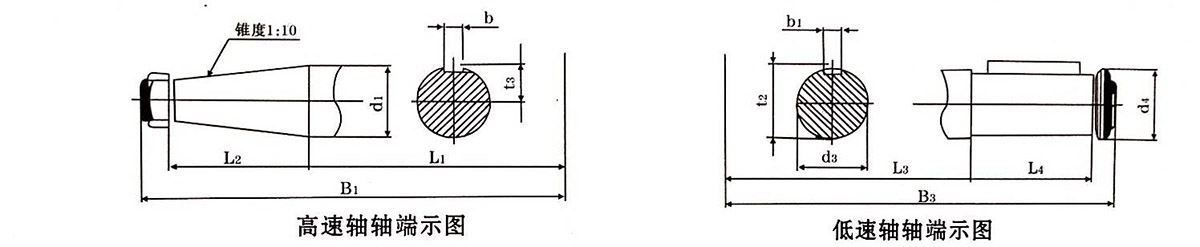 JZQ系列圓柱齒輪減速器進、出軸軸端尺寸